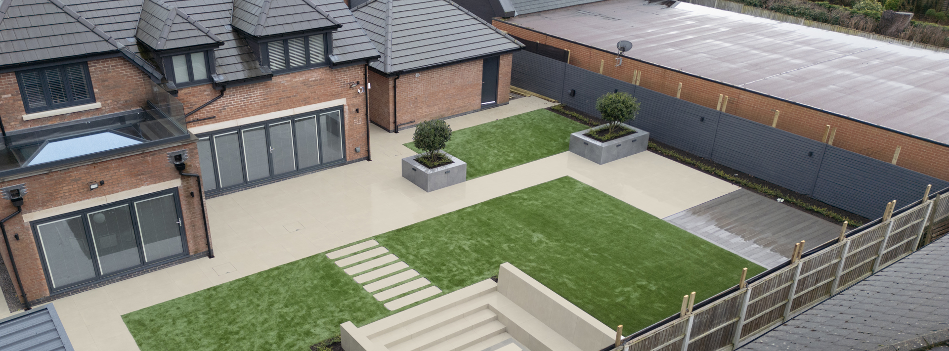 This stunning garden project perfectly combines a modern, sleek design with a focus on low maintenance. Our Arrento® Core porcelain paving in Off White has been used throughout, creating a clean and contemporary finish that’s easy to clean due to the great low-maintenance properties of porcelain.