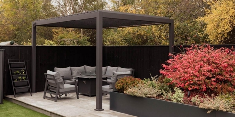 Other garden elements like the dark planters, neatly frame the garden and add softer textures through the colourful bushes. The black fencing is also a simple (but effective) touch that really highlights the speckled pebble design in the Lapis.